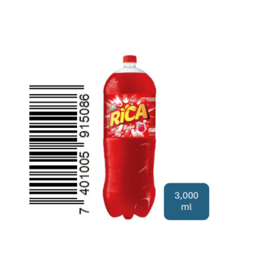 BEBIDA CARBONATADA RICA ROJA GASEOSA PET 6X3000 ML CARBONATED DRINK STRAWBERRY FLAVOR 6X3000 ML RCA
