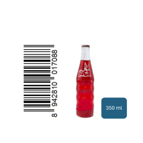 BEBIDA CARBONATADA RICA ROJA VIDRIO 24X350 ML CARBONATED DRINK STRAWBERRY FLAVOR CRYSTAL 24X350 ML RCA